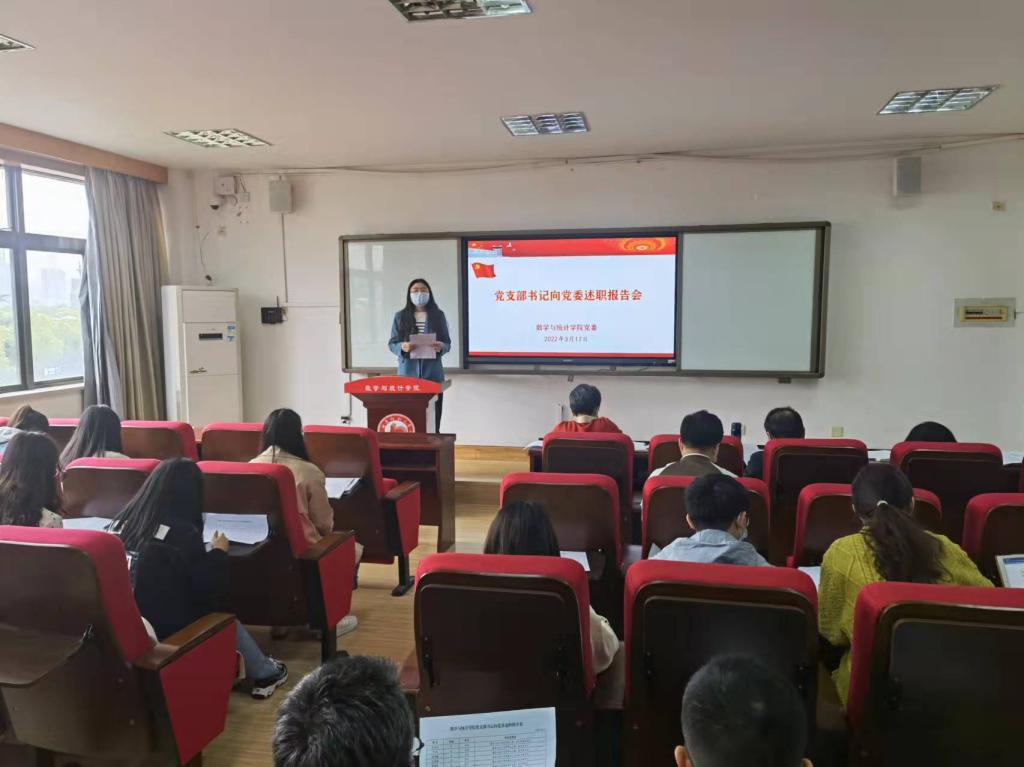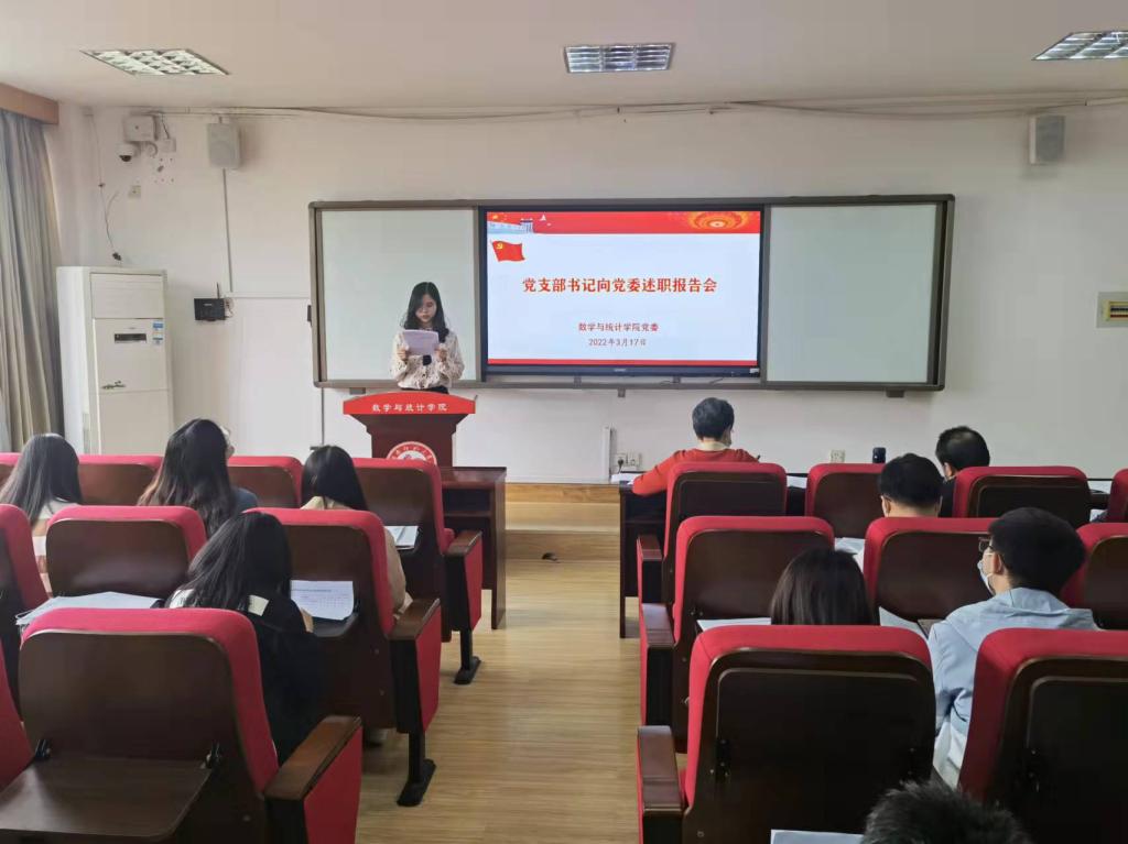 3月17日下午,数学与统计学院党委在307学术报告厅开展2021年度党支部书记“双述双评”现场述职。会议由学院党委专职组织员覃志斌主持。