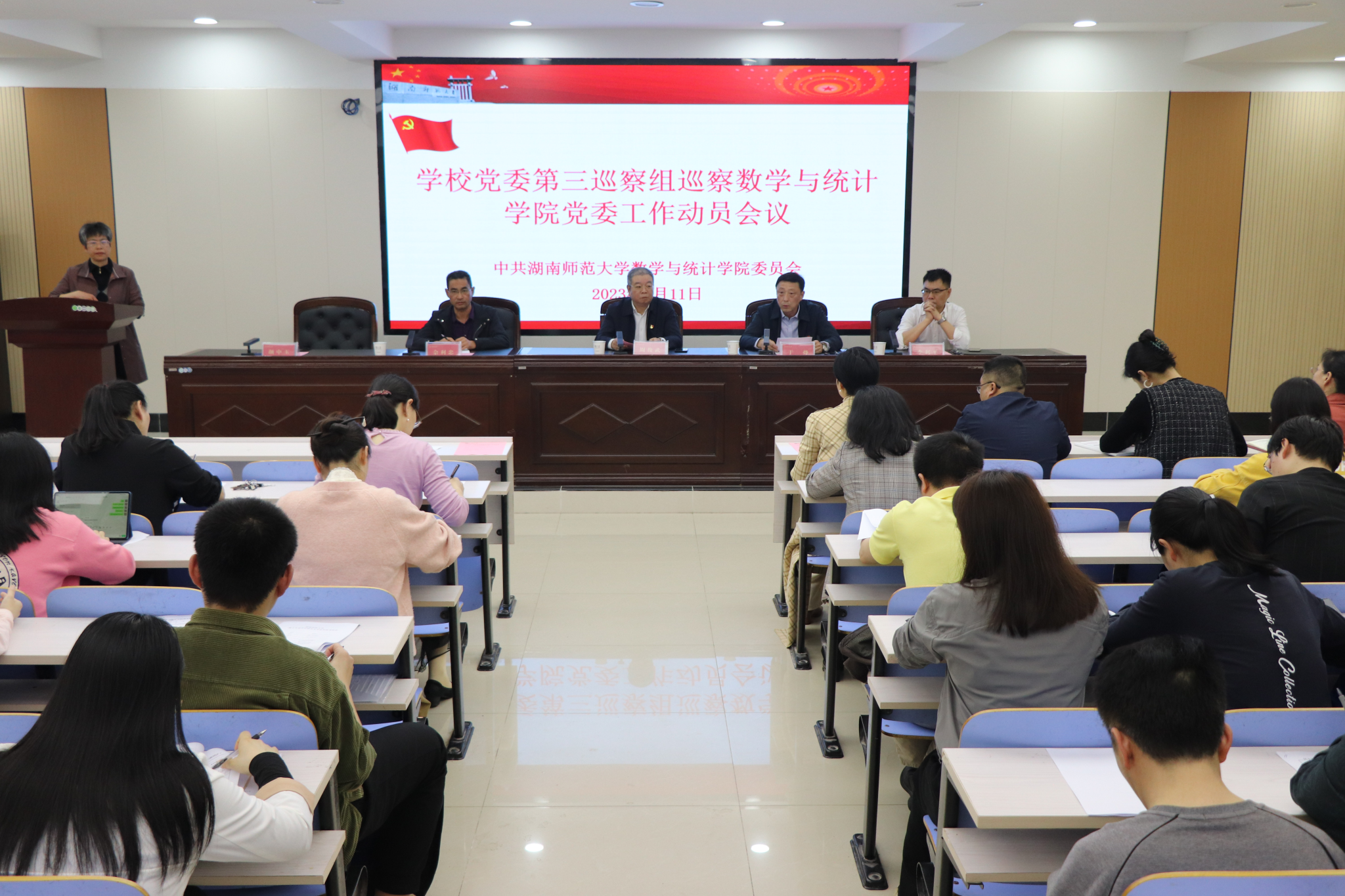 2023年4月11日下午,党委第三巡察组巡察数学与统计学院党委工作动员会在数学与统计学院309报告厅召开。校党委副书记、校党委巡察工作领导小组副组长周俊武,党委巡察办副主任佘利忠,校党委第三巡察组组长于烽及全体成员,数学与统计学院学院党委、行政领导班子成员出席会议,数学与统计学院院长李利平等列席会议。会议由数学与统计学院党委书记颜中玉主持。