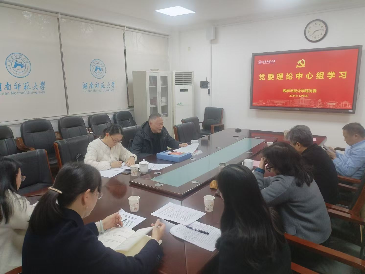 12月5日下午,数学与统计学院党委在格物楼301会议室召开党委理论中心组学习,学校巡听旁听工作组李学荣书记和袁洁老师到会巡听旁听,会议由学院党委书记颜中玉主持。