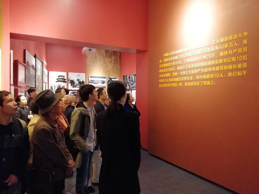 上午9:30到达湖南省党史陈列馆,在“敢教日月换新天”雕塑前,由行政支部书记余雅睿同志领誓,带领党员同志重温入党誓词。在庄严的宣誓中,党员同志们更加坚定了理想信念、使命担当。然后,在讲解员的讲解中,全体党员同志一起回顾我党辉煌的革命历史,缅怀老一辈革命者的光辉业绩,特别是更加详细了解了湖南老一辈革命者的奋斗历程和丰功伟绩!