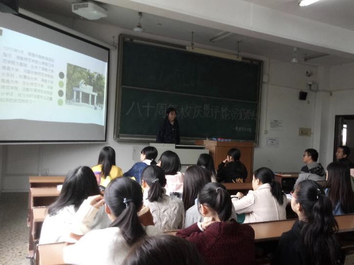 此次评论员大会围绕"八十周年校庆"展开。活动包括对湖南师范大学校史介绍,概括湖南师范大学的发展,以及对湖南师范校庆的全体动员。80周年校庆动员大会结束后,主持人刘依典总结了评论员的工作任务,规范了评论文的书写方法,详细解说了评论文的写作技巧。