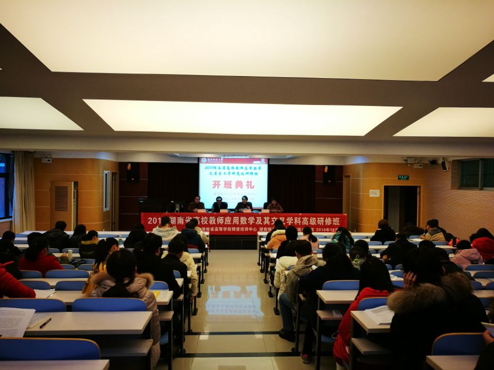 (通讯员 段冰 刁子玉)12月8日上午8:30湖南省高校教师应用数学及其交叉学科高级研修班开班典礼在湖南师范大学数学与统计学院309多媒体教室举行。湖南省高师培训中心副主任姚新良、湖南师范大学数学与统计学院院长谢资清、党委书记颜中玉出席。开班典礼由湖南师范大学数学与统计学院副院长高旗举主持。