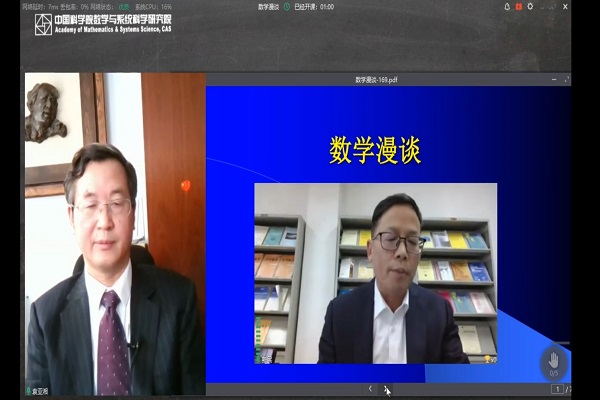 随后,学院全体师生在线观看了中国科学院院士袁亚湘的“数学漫谈”科普报告直播。袁亚湘院士结合生活实例,诠释了“数学美”“数学真”“数学趣”“数学难”“数学慧”的具体内容,向同学们阐述了数学严谨性和抽象性等特点,在阐述数学的“真”时,他将其比喻为天然去雕饰的“素颜美”。并通过讲述“热气球迷路”等笑话,说明数学研究必须贴近现实。在谈到如何学数学时,袁院士通过对华罗庚等数学家的数学人生的分享,告诫大家:在数学学习的过程中,努力比天赋更重要。袁院士还通过阐述数学在天气预报、通讯、人工智能、金融经济等方面的应用,指出了数学在人类经济和社会发展中的重要性。讲座最后,他在线回答了部分听众的问题,并希望公众更加关心和喜欢数学,并给大家送上了国际数学节的祝福。