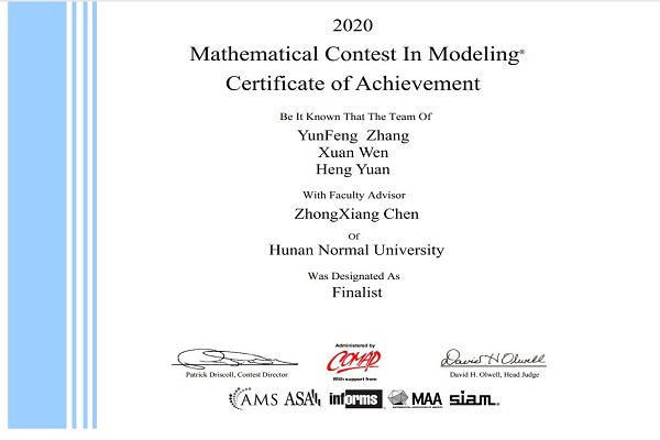 (通讯员 陈奕静 刘依典 郭健)日前,2020年美国大学生数学建模(MCM)及交叉学科建模(ICM)竞赛成绩揭晓,该比赛要求参赛队员就指定的问题在规定时间内完成从建立模型、求解到论文撰写的全部工作,锻炼了参赛选手研究问题、建立模型的能力,还培养了大学生的团队合作意识。