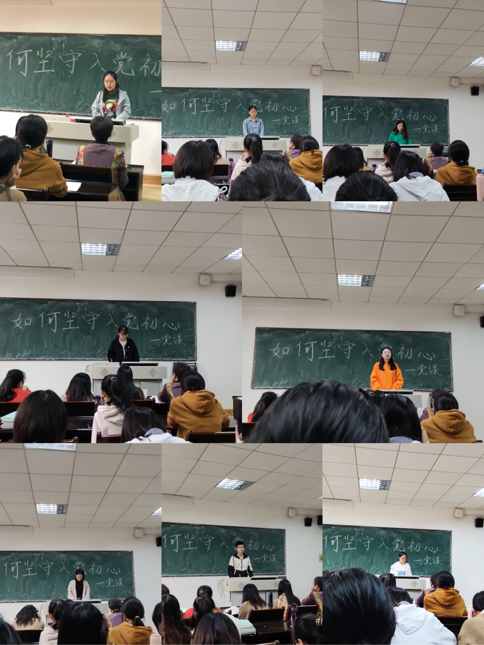 首先,各学科方向的共9位研究生党员代表根据近两个月的研究生学习、生活体验就“如何坚守入党初心”谈个人想法。大家一致认为,作为一名研究生和青年党员,初心应该是探寻学科前沿知识与社会实际问题结合点,追求以所学反哺回馈社会的锤炼之路。当务之急是在导师的指导下,认真做好研究生三年学习规划。