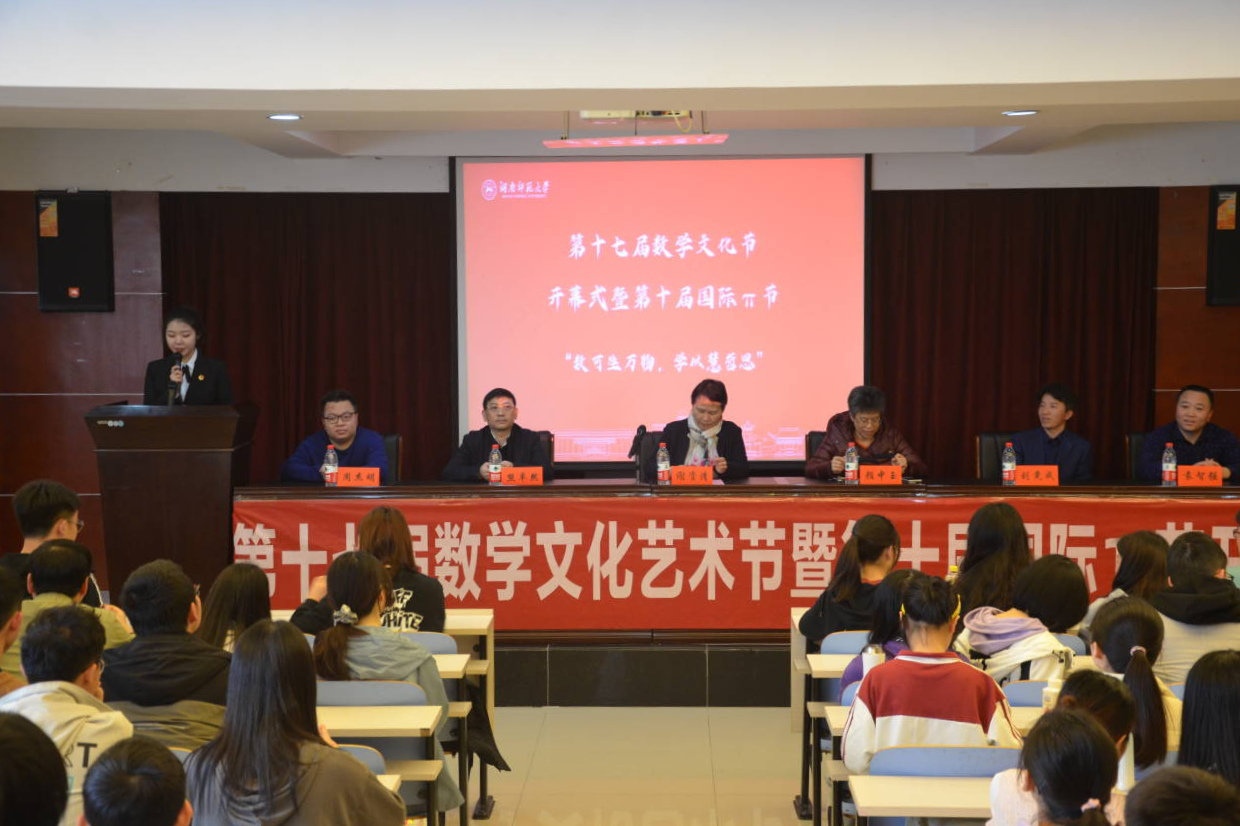 (通讯员 何粤 李静蕾 纪雨凡)3月14日下午,数学与统计学院(以下简称“数统院”)第十七届数学文化节暨第十届国际π节开幕式于格物楼309报告厅举行。此次活动以“数可生万物,学以慧哲思”为主题,湖南师范大学副校长谢资清、数统院党委书记颜中玉、院党委副书记熊卓然、数学系主任刘竟成、副主任袁智强、统计系主任周杰明,各年级辅导员出席此次活动。