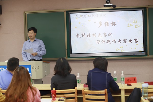 (通讯员 彭承清 范瑞临 穆文卿)4月21日下午,数学与统计学院(以下简称“数统院”)在格物楼408移动教育实验室举行“多维杯”教师技能大赛之课件制作大赛决赛。此次比赛由我校兼职硕士研究生导师、湖南师大附中博才实验中学校长许小平,我校数统院数学教育教研室兼职成员、长沙市望城区第一中学数学教师郑柯,我校教育科学学院教育技术学专家简婕,多维教育集团人才中心运营总监宋杨,多维教育集团深圳国际培优校长、教研总监吉瑶,多维教育集团湖南湘潭培优校长何一帆,数统院数学系副系主任袁智强担任评委。