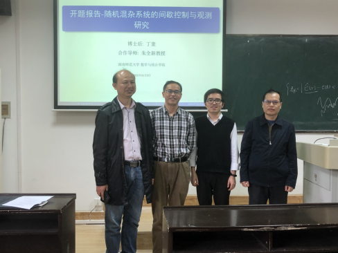 2021年11月3日下午,我院在302报告厅举行统计学博士后丁奎开题报告会。会议由数学与统计学院朱全新教授主持,朱教授任开题专家组组长。湖南师范大学数学与统计学院候耀平教授和文有为教授担任专家评委。