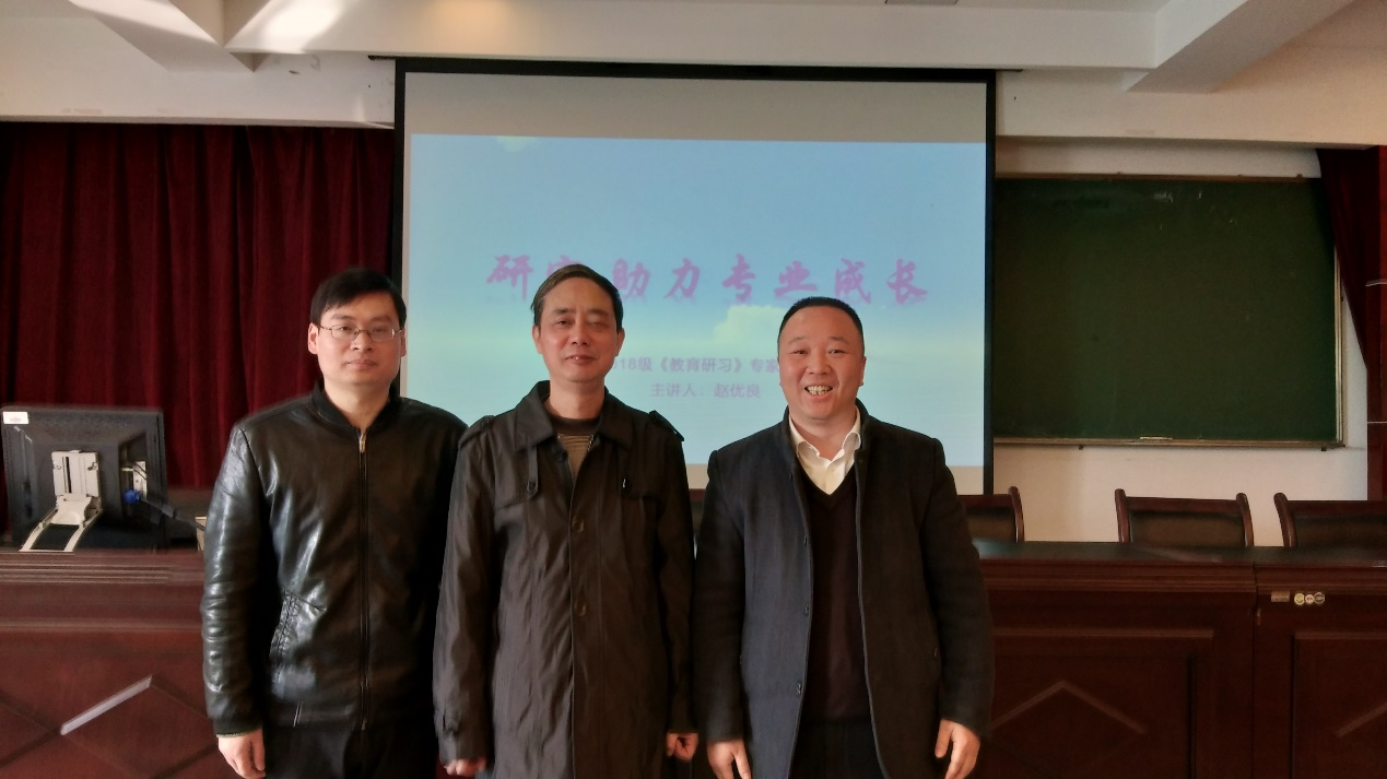 赵优良介绍了教师成长的三个境界,强调教师要有理想信念、实践反思和学习提高;介绍了从普通到卓越的榜样教师,强调要“以写促思”;他从研究学生、研究课标、研究教材、研究教法、研究学法、研究考试、研究命题、研究竞赛、研究评价和研究课题等十个方面,结合个人的研究经历介绍了如何做教学研究。他的讲座为师范生开展教育研习打开了思路,大家纷纷表示受益匪浅,对接下来为期两周的教育研习充满信心。