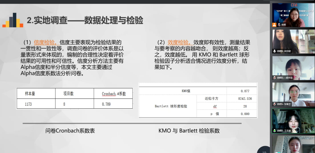 (通讯员 陈奇)为引导大学生创新创业实践,提高大学生的团队协作、组织策划、收集分析数据等能力,2022年4月3日,湖南师范大学首届大学生市场调查与分析大赛暨第十二届“正大杯”全国大学生市场调查与分析大赛校赛答辩如期顺利举行。湖南师范大学数学与统计学院(以下简称数统院)郭水霞副院长、市调大赛负责人欧辉老师、统计与金融数学系系主任周杰明老师、副系主任杨晶老师、商学院蔡国良老师、数统院赵维老师以及刘思晟老师出席了本次比赛并担任评委。