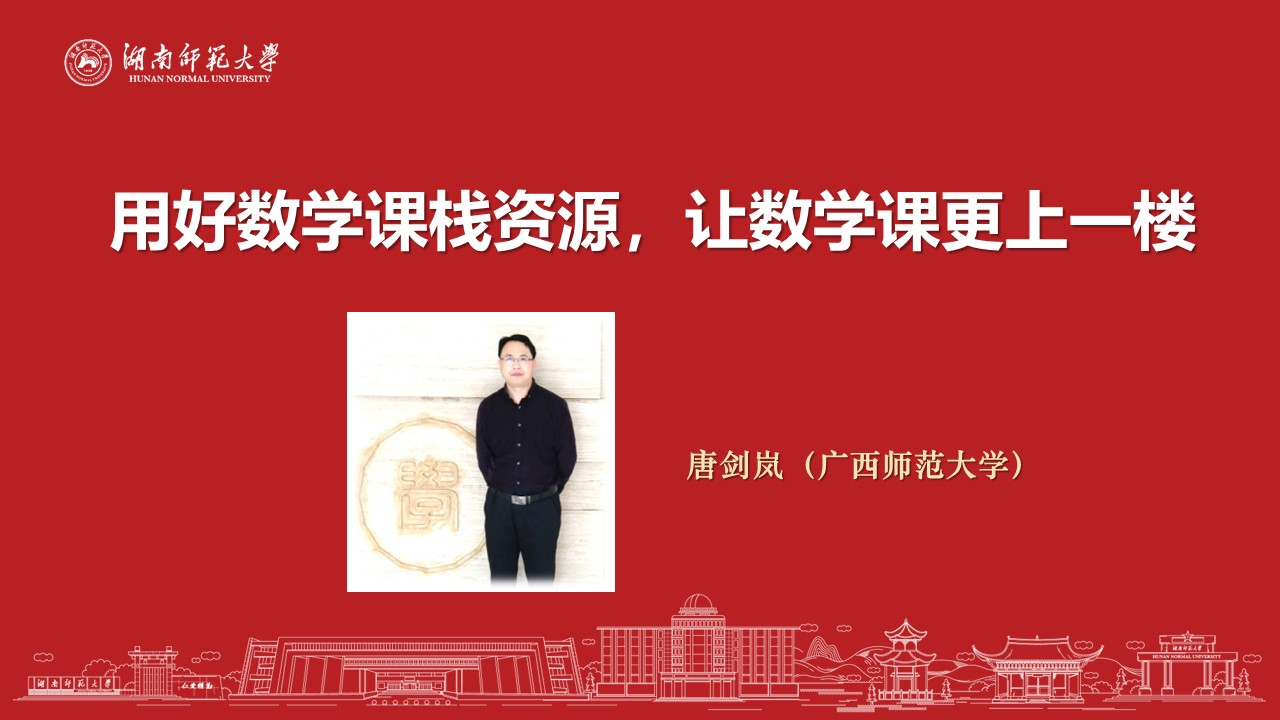 2022年6月25日星期六19:30-21:30,广西师范大学唐剑岚教授做客湖南师范大学“麓山数学教育论坛”,通过腾讯会议平台进行了一场主题为“用好数学课栈资源,让数学课更上一楼”的讲座。此次讲座由数学教育教研室主任蒋培杰主持。