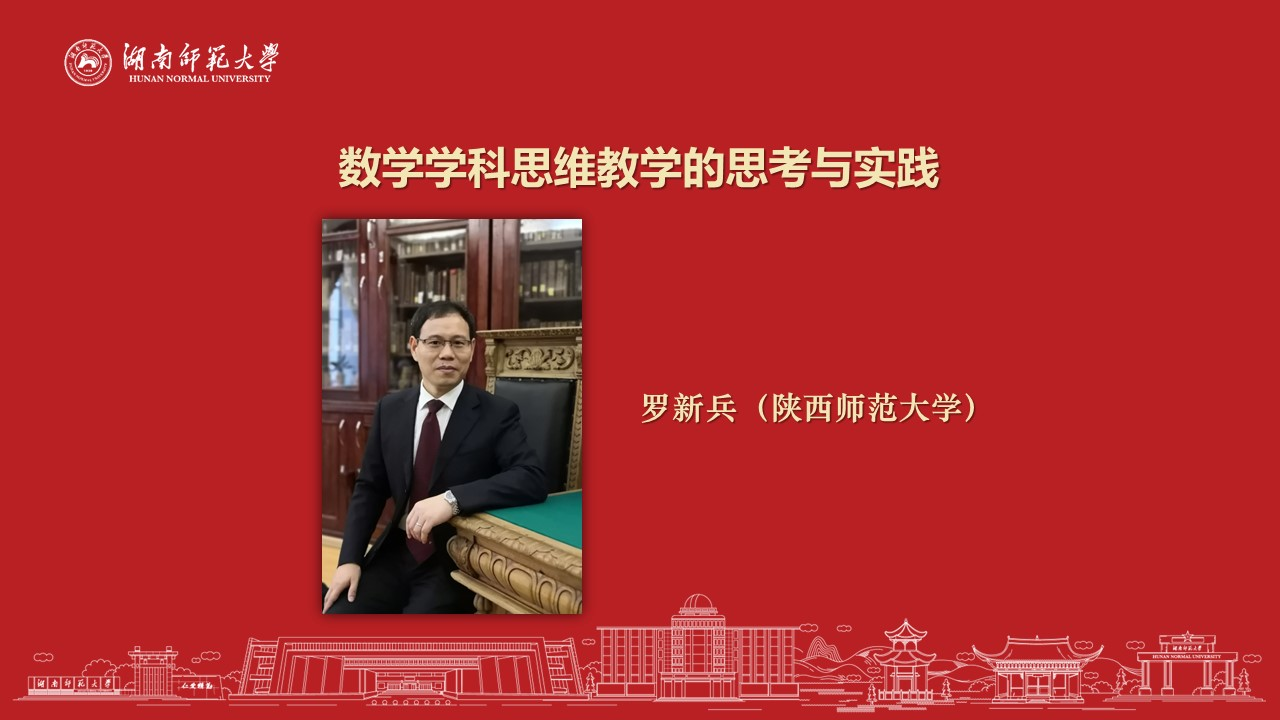 2022年9月25日星期日晚上7:30-9:30,陕西师范大学罗新兵副教授做客湖南师范大学“麓山数学教育论坛”,通过腾讯会议平台进行了一场主题为“数学学科思维教学的思考与实践”的讲座。此次讲座由数学系副主任袁智强主持。