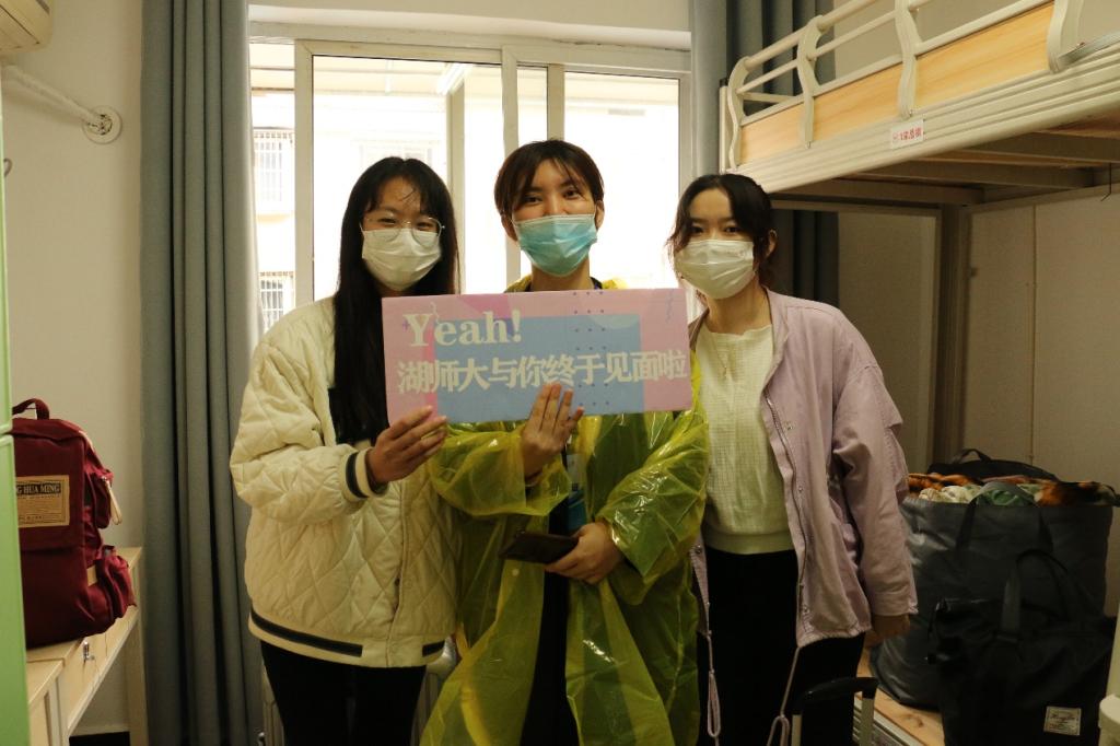 8点,陆续有新生前来报到。测量体温、查验校园绿码、核酸检测结果、查验入学资格、领取校园卡、学生公寓入住、办理报到手续,新生们在志愿者的引导和学校各部门工作人员的协助下,顺利完成入学手续办理、相关资料领取等事项,并纷纷拿着展板在报到地点前合影,纪念从今日起开启的崭新而又美好的研究生生活。