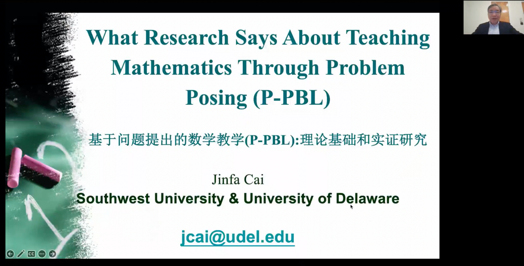 2022年11月8日星期二晚上7:30-9:30,美国特拉华大学终身讲席教授蔡金法做客湖南师范大学“麓山数学教育论坛”,通过腾讯会议平台和bilibili网络同步直播进行了一场主题为“基于问题提出的数学教学(P-PBL):理论基础和实证研究”的学术报告。讲座由数学与统计学院谢圣英老师主持。