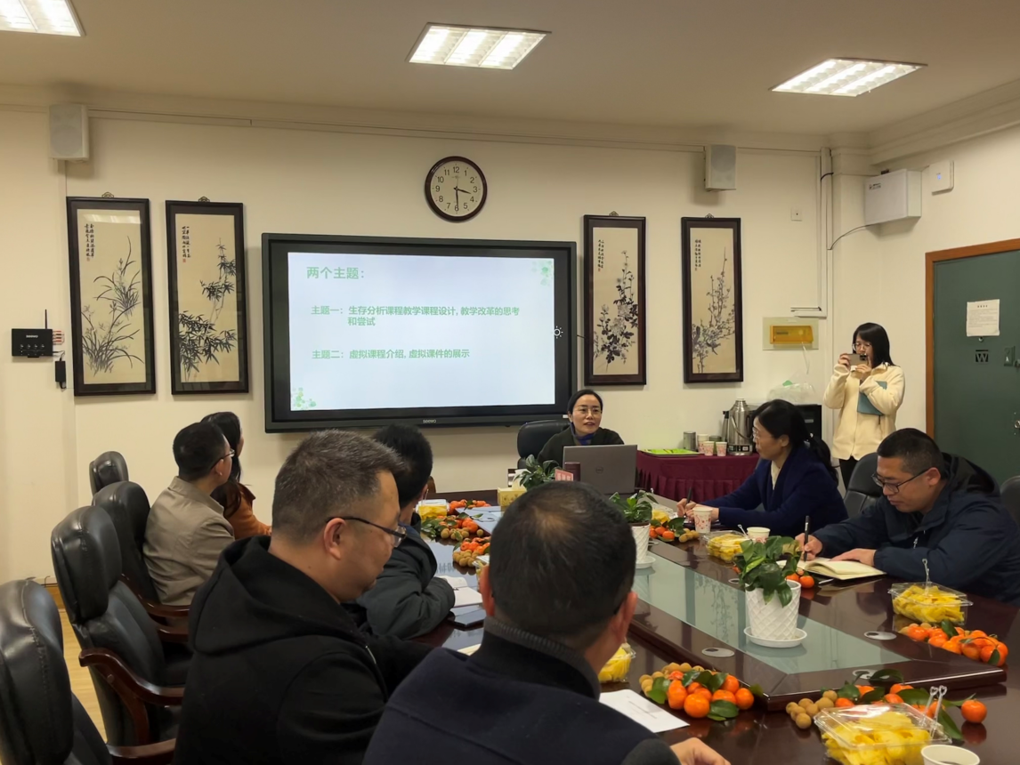 数学与统计学院副院长郭水霞教授、教师教育学院(教师教学发展中心)教师教学能力发展科科长廖志华以及统计与金融数学系全体教师参加会议。