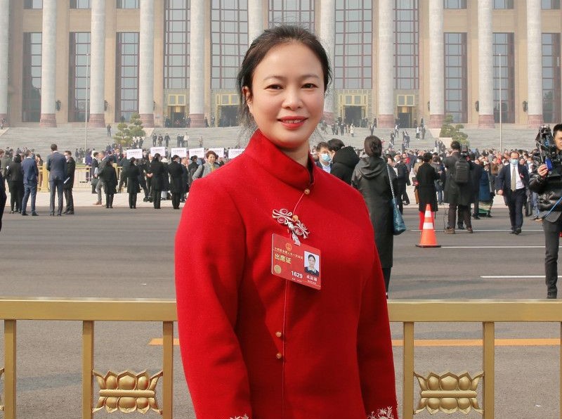 成新湘,全国人大代表,湖南省湘绣研究所有限公司执行董事、总经理,中国工艺美术大师、国家级非物质文化遗产代表性项目湘绣省级代表性传承人。