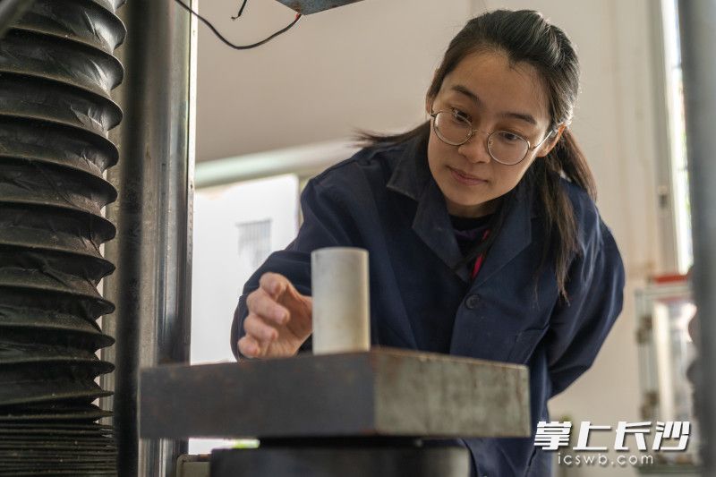 黄麟淇正在中南大学校内实验室你放置岩石标本,准备做进一步的采集分析。全媒体记者 周数邑 摄