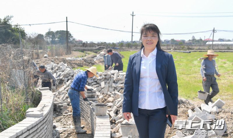 彭兴辉现场查看田间沟渠的施工进度。长沙晚报全媒体记者 邹麟 摄
