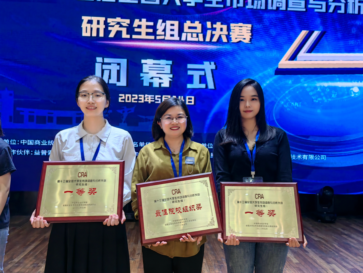 (供稿 数学与统计学院)5月13日,由中国商业统计学会主办、正大集团冠名,南昌大学承办的“正大杯”第13届全国大学生市场调查与分析大赛研究生组总决赛在南昌大学举行。我校来自数学与统计学院、历史文化学院、商学院、教育科学学院和信息科学与工程等学院的研究生参赛队获得国家一等奖2项、国家三等奖6项、省一等奖2项、省二等奖1项。获奖成绩创历史新高,位居全国高校前列,我校也获得该项赛事研究生组最佳院校组织奖。