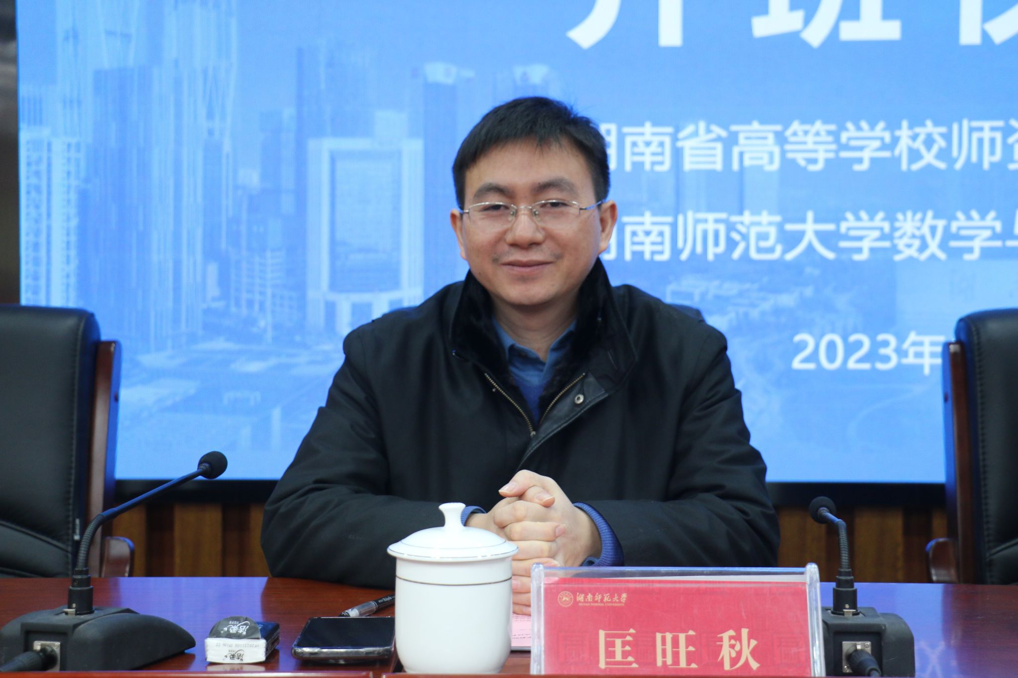 近日,由湖南省高等学校师资培训中心主办,湖南师范大学数学与统计学院承办的2023年教育数字化背景下高校数学教师教学科研能力提升高级研修班在湖南师范大学顺利开办。12月21日上午,湖南省高等学校师资培训中心常务副主任彭云石,湖南省高等学校师资培训中心副主任匡旺秋,湖南师范大学数学与统计学院的院长李利平、党委书记颜中玉出席开班仪式,仪式由湖南师范大学数学与统计学院行政副院长陈君主持。