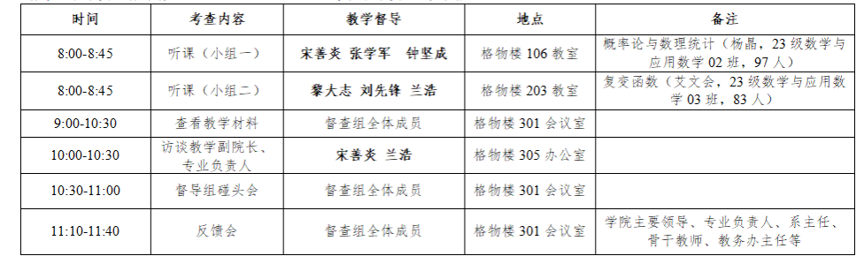 督导组深入教学一线,多维度把脉教学质量督查。当日,督导组通过随堂听课、档案核查、座谈等形式,对学院本科教学进行全方位“体检”。在课堂实况检查环节,督导专家随机抽选专业必修核心课程《复变函数》和《概率论与数理统计》,重点关注教师授课内容与人才培养方案的契合度;在档案审查阶段,系统查阅人才培养方案、课程教学大纲执行、实践教学、毕业论文等材料。