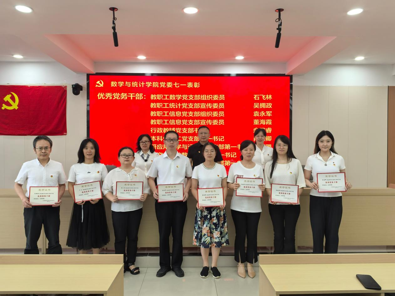 (通讯员 胡曼诗 温雨茜)6月12日下午,数学与统计学院(以下简称“数统院”)党委于格物楼309报告厅举办“百炼成钢,奋进新篇”毕业生主题党日活动暨2024-2025年度“七一”表彰大会。数统院党委书记颜中玉,党委副书记涂榉耀,副院长陈君,党委委员、计算与随机数学教育部重点实验室专职副主任刘亚琴,党委委员、院组织人事秘书林虹出席此次活动,2024级辅导员刘美担任活动主持人,学院全体党员参加此次活动。
