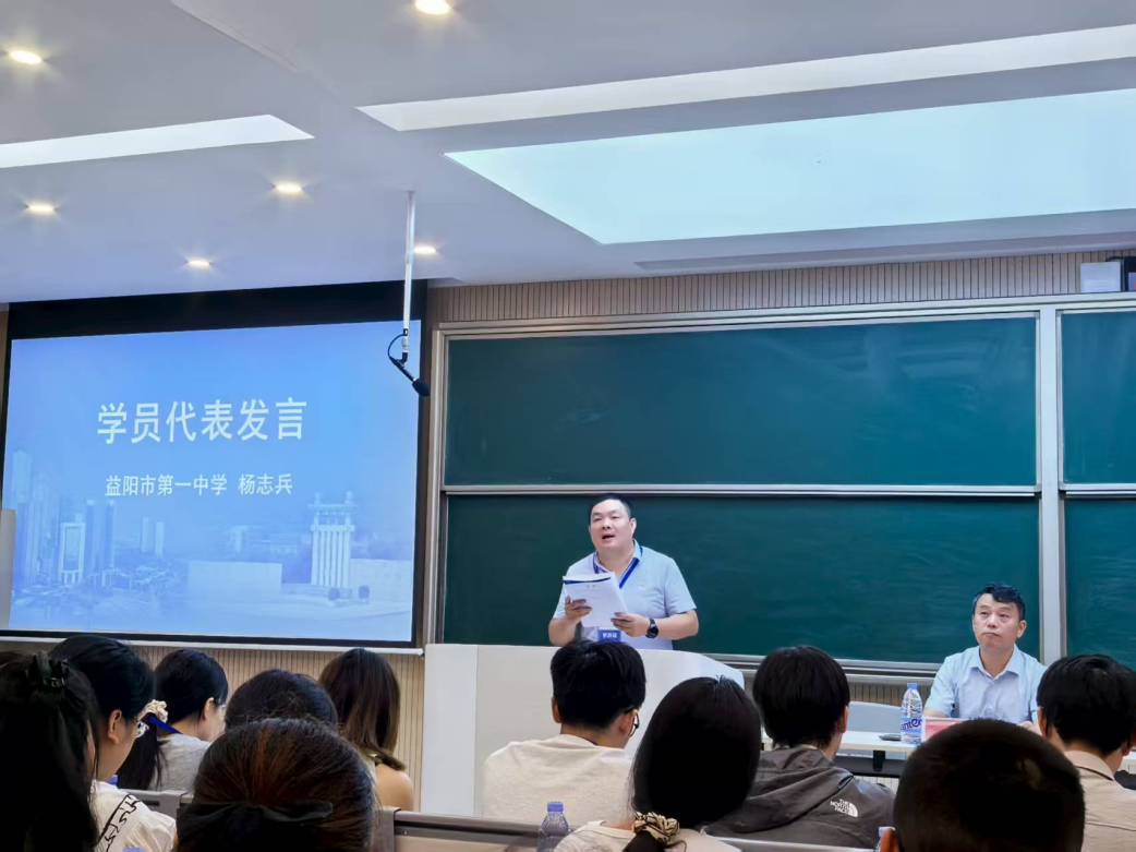 来自益阳市一中的杨志兵代表全体参训学员对支持此次培训的领导老师们表达了诚挚的感谢,并表示一定珍惜宝贵的学习机会,在接下来的七天时间里潜心研究,积极共创,将所学所研带回课堂,赋能益阳数学竞赛教育教学的提高和创新,为益阳市基础教育高质量发展贡献力量。