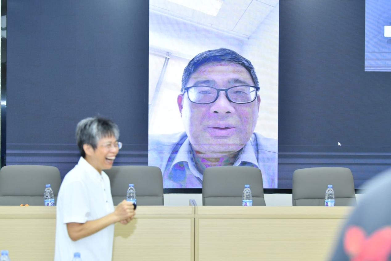 同时,因有工作任务无法来到现场参加聚会的吕长虹,通过远程视频通话,向老师和同学们问好并发言,随后全程通过视频参加座谈。