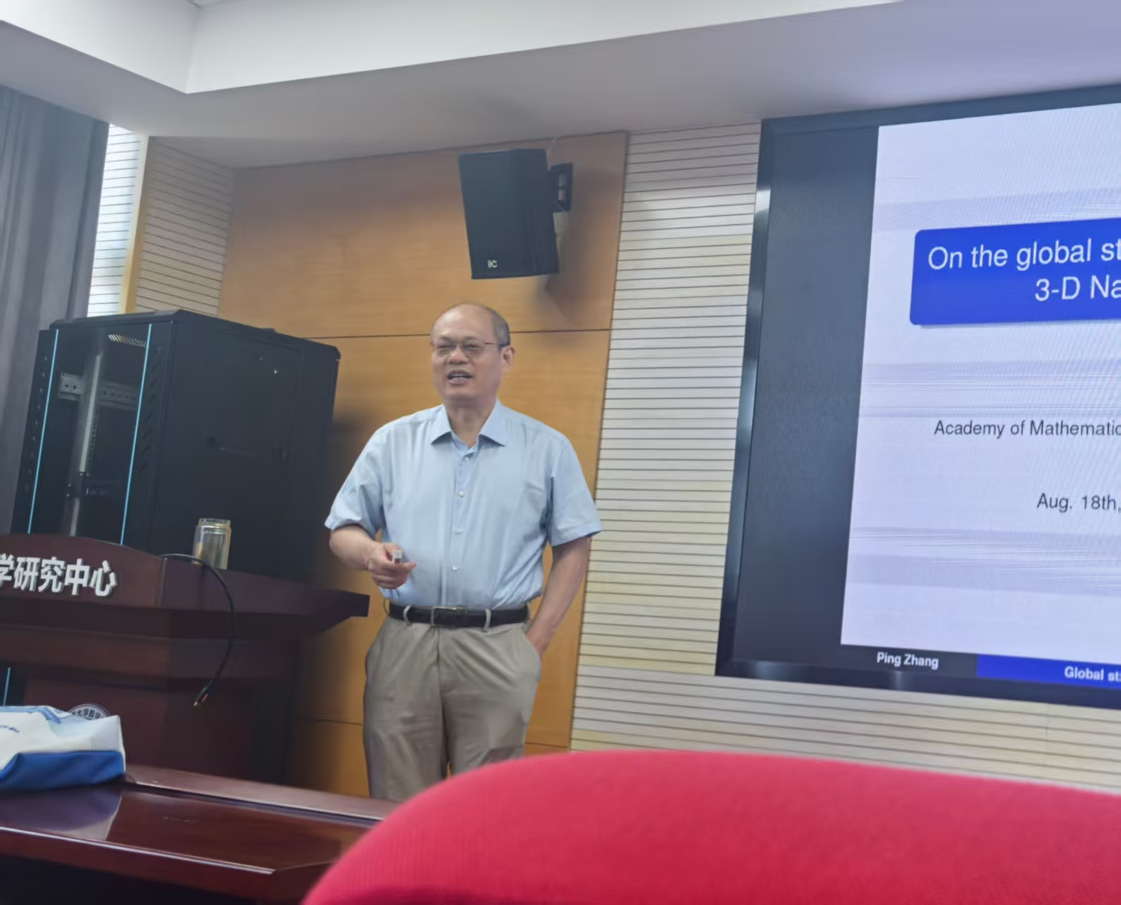 8月18日,应数学与统计学院邀请,中国科学院院士、中国科学院数学与系统科学研究院院长张平到我院做学术交流,并做题为“Global stability of large Fourier mode for 3-D anisotropic Navier-Stokes equations in cylindrical domain”的精彩学术报告。报告由学院院长李利平教授主持,副院长黄元秋、数学系系主任赖柏顺、以及部分师生代表参加了报告会。