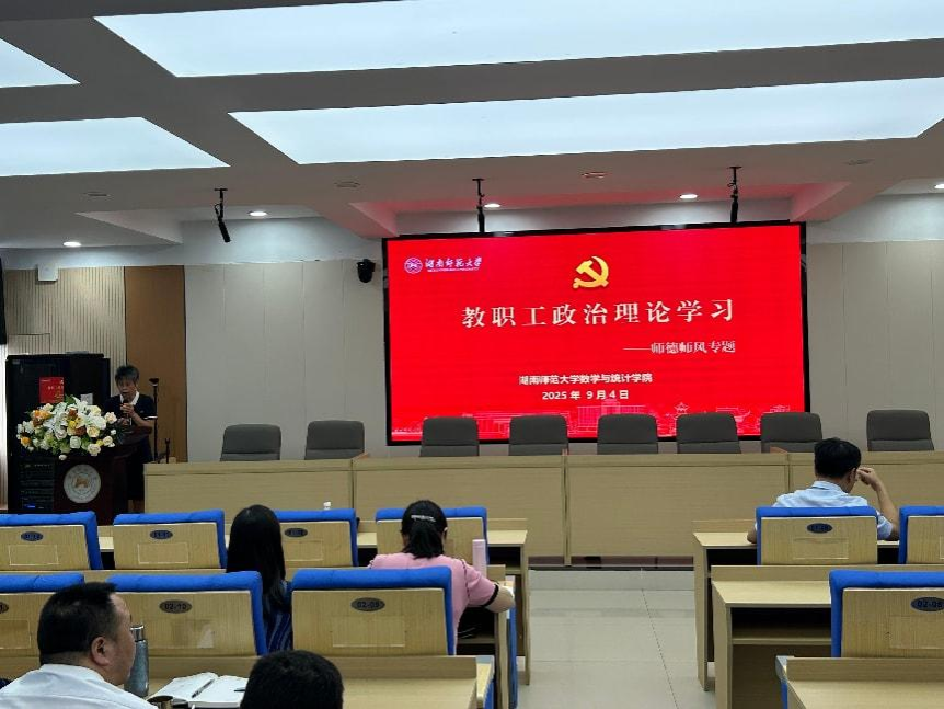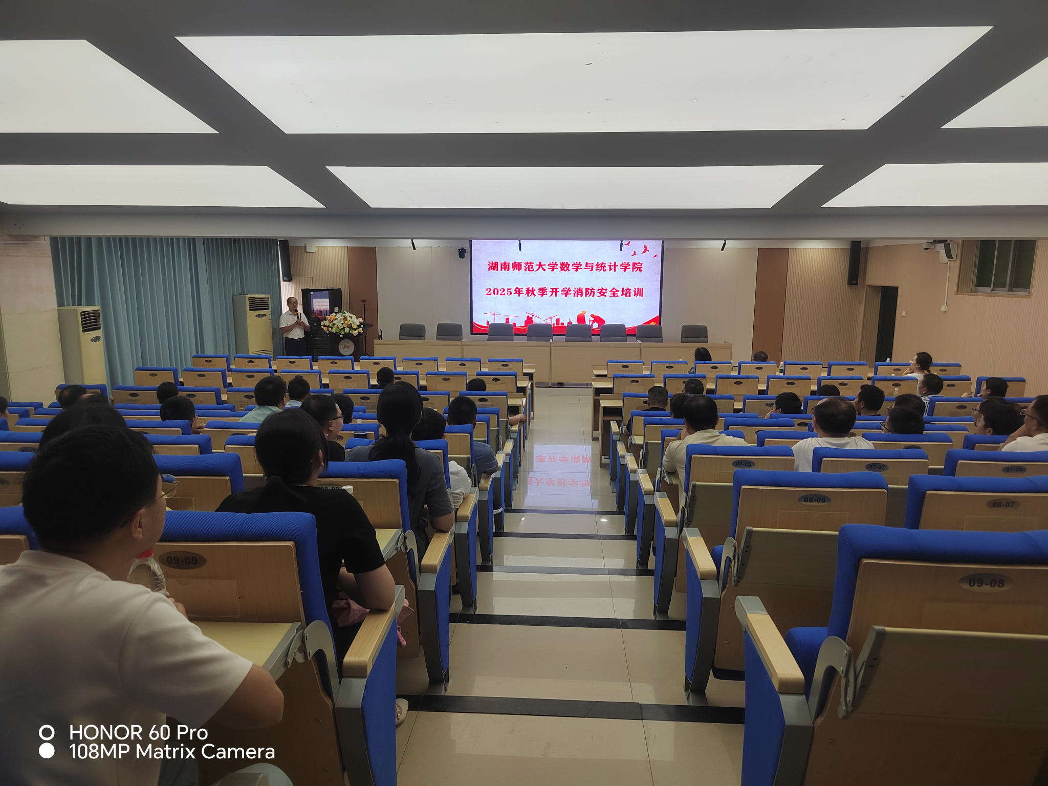 2025年9月4日,数学与统计学院在格物楼309报告厅召开新学期工作会议。会议由院长李利平教授作新学期工作主题报告,全院教职工参加。工作报告围绕师资建设、人才培养、科研与社会服务、学院管理等方面展开全面总结与展望,并组织了师德师风专题学习和消防安全培训。