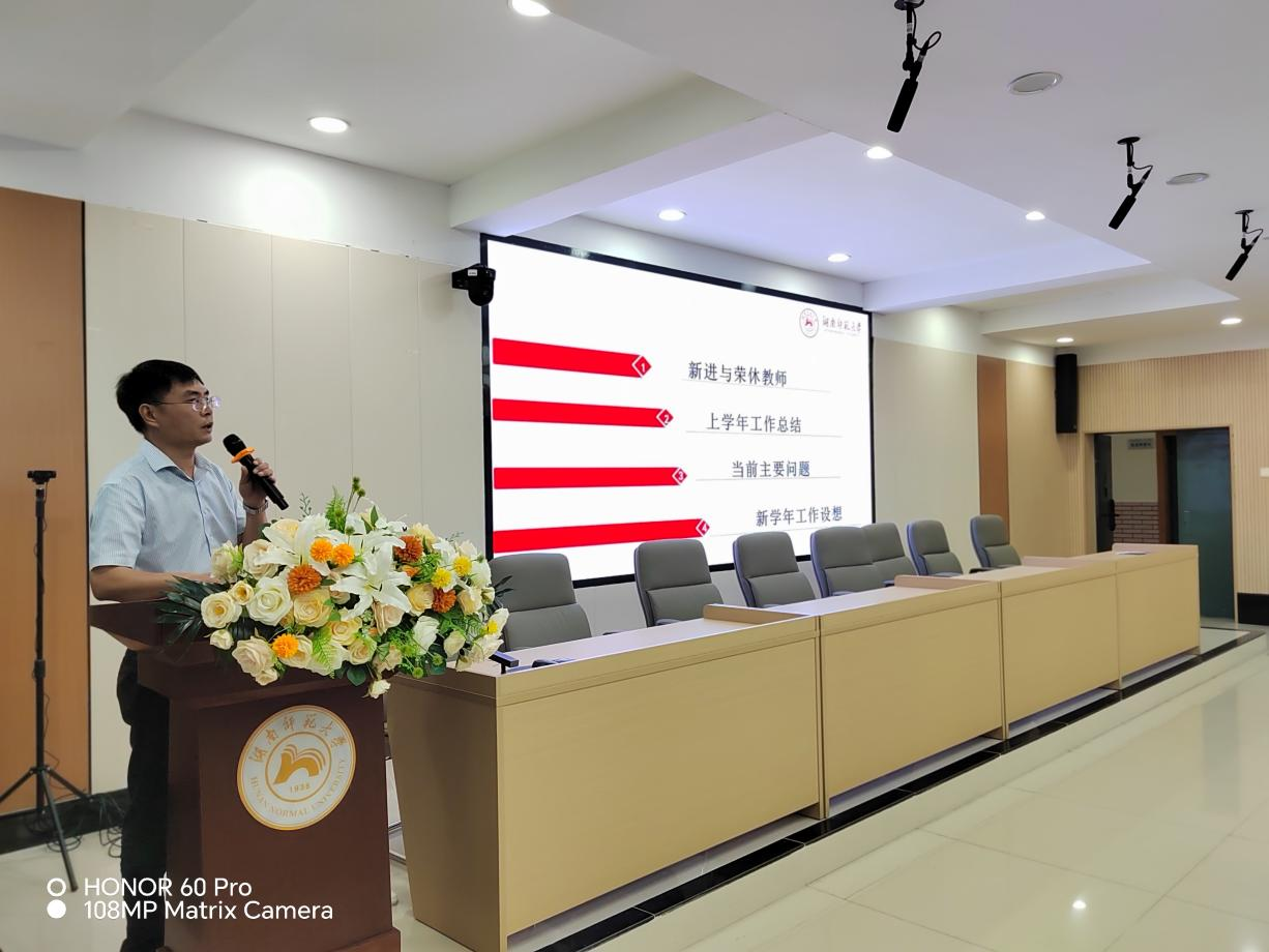 在工作总结部分,李利平回顾了上一学年学院在师资队伍建设、人才培养、科研项目、学科平台建设等方面取得的显著成绩。学院成功引进多名青年博士人才,多位教师晋升高级职称,荣获“芙蓉学者”、教学优秀奖等多个重要荣誉。本科生和研究生在各类竞赛、保研升学、就业等方面表现突出,学科建设与社会服务成果显著。