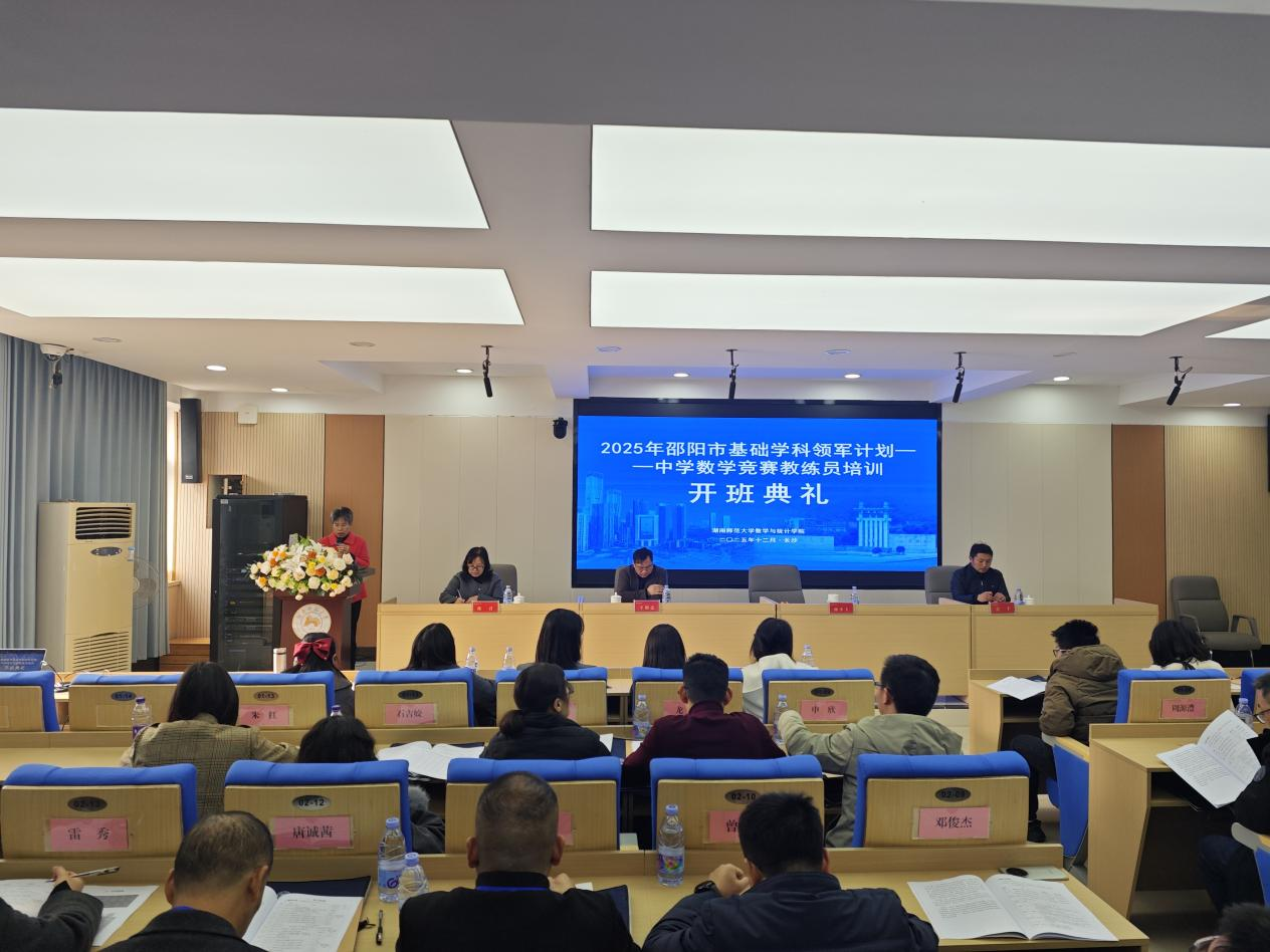 (通讯员佚名)2025年12月8日下午,2025年邵阳市“基础学科领军计划”中学数学竞赛教练员培训开班典礼在湖南师范大学数学与统计学院309报告厅隆重举行。此次培训旨在通过高校优质教育资源与地方基础教育需求的精准对接,系统性提升邵阳市中学数学竞赛教学水平,为当地筑牢拔尖创新人才培养根基。