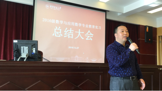 12月27日下午,数学与统计学院(以下简称“数统院”)在格物楼309教室举行2016届数学教育实习总结大会。数统院副院长黄元秋、数学系副系主任袁智强等出席会议。