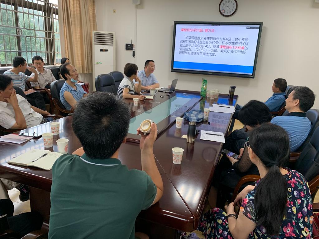 数学专业副主任袁智强分析了数学专业的基本情况,提出了专业课程目标达成度分析工作中存在的困难与问题。袁智强老师就课程目标达成度计算方法进行了深入解析,即根据每项课程目标相关的课程考核数据(包括期末考试、课堂表现、期中测验等),计算样本的实际考核结果与目标期望值的比值,据此判断某项课程目标的达成度。提出了目标反馈至小题,大题解剖细化到具体目标要求,毕业要求与课程目标严格对应等计算方法,较好地解决了目前教师计算课程目标达成度的困惑及难题。与会人员围绕如何做好课程目标达成度分析展开了热烈讨论,纷纷表示会后将积极投入到课程目标达成度分析工作中去,将全身心配合学院后续的专业认证工作。