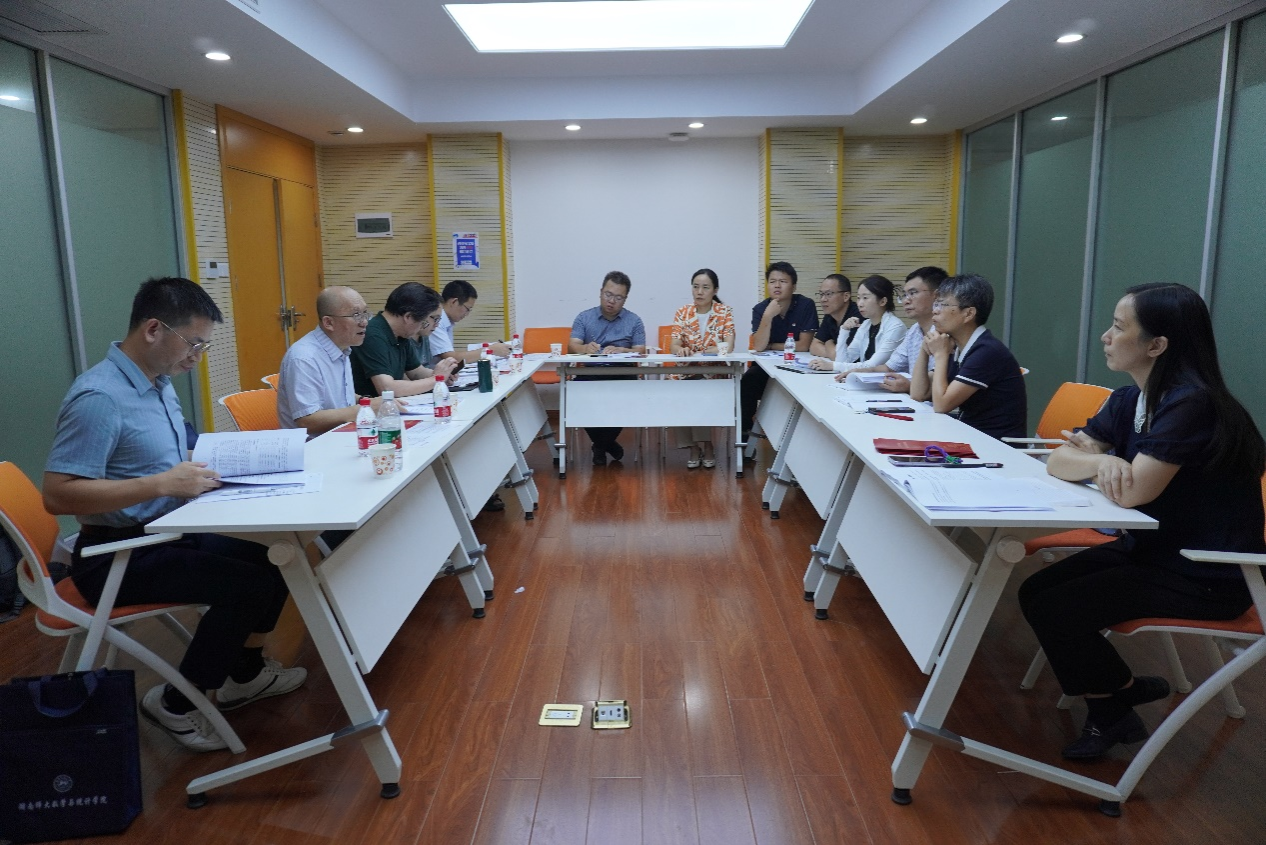 (通讯员 胡曼诗 迟薪格 李墨)9月13日,数学与统计学院(以下简称“数统院”)统计学专业在格物楼开展本科教育教学自我评估工作。湖南师范大学副校长谢资清、数统院院长李利平、院党委书记颜中玉、教学副院长郭水霞、科研副院长黄元秋、行政副院长陈君、院党委副书记涂榉耀、计算与随机数学教育部重点实验室专职副主任刘亚琴、院党委专职组织员覃志斌、统计系主任周杰明、副主任杨晶和部分专任教师全程参与了此次评估工作的各个环节。