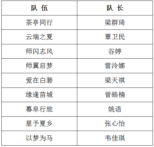 经个人申报,团支部推荐,院团委组织面试,学工办老师讨论,现将2022年度数学与统计学院三下乡队长名单公布如下: