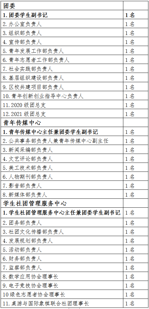 (一)院团委学生副书记、青年传媒中心主任兼团委学生副书记、学生会轮值主席、学生社团管理服务中心主任兼团委学生副书记