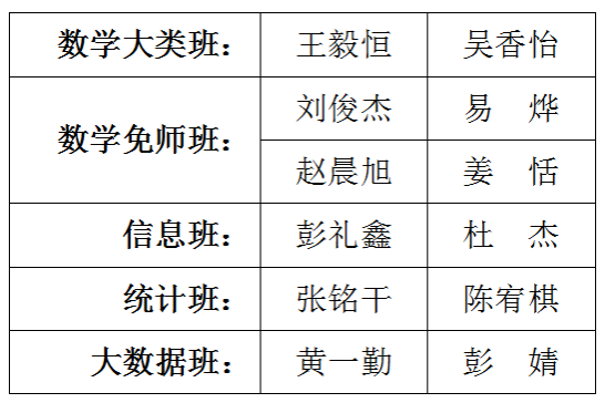 根据《共青团湖南师范大学数学与统计学院委员会文件》(院团字〔2023〕8号),经自主报名,团支部推荐,院团委资格审查,院学工办组织面试,决定确定王毅恒等12名同学担任2023级新生班指导,具体名单公示如下:
