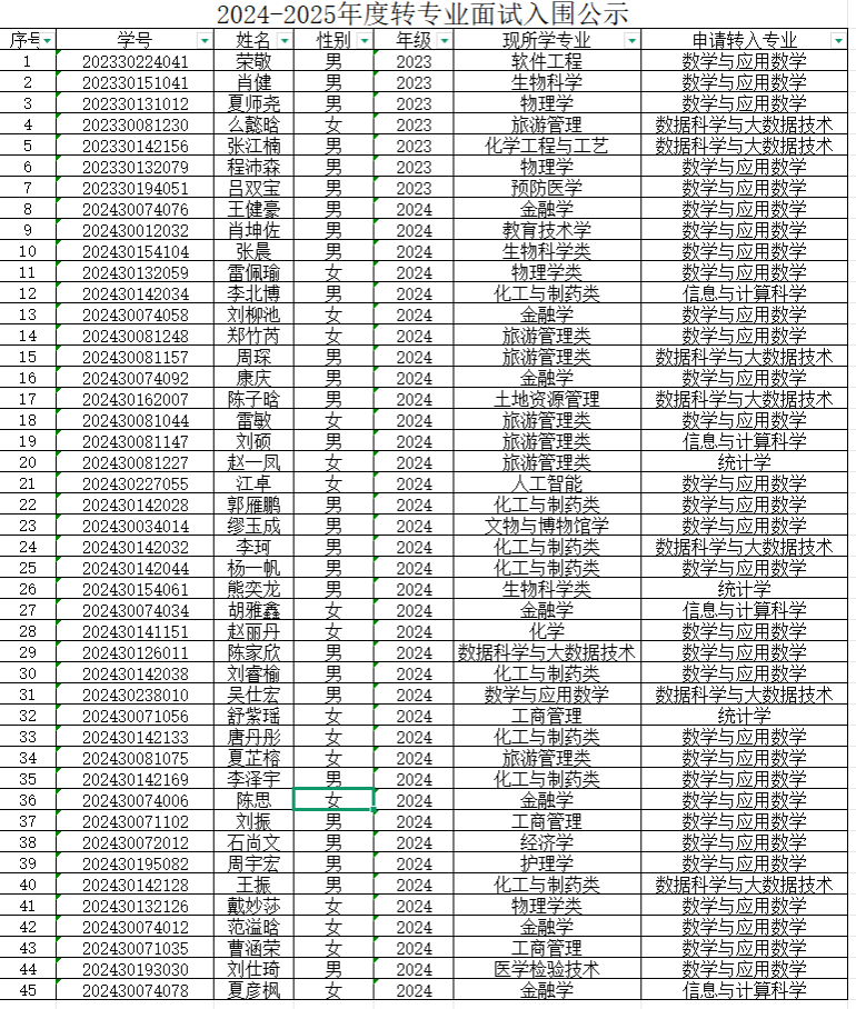 本次我院共收到81名学生提交的转专业申请,经我院笔试考核,有荣敬等45名同学具有面试资格,请有面试资格的同学准时到我院参加面试,请准备2分钟左右的自我介绍。