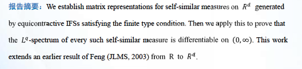 报告人简介: 吴玉锋,中南大学数学与统计学院,讲师。2020年博士毕业于香港中文大学, 研究方向为分形几何,动力系统与遍历理论,在 Math. Z., JLMS, AFM, JMAA等期刊发表学术论文数篇。