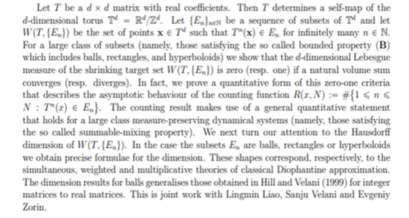 报告题目:The shrinking target problem for matrix transformations of tori: revisiting the standard problem