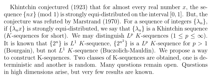 报告题目一:Some progresses in the study of Khintchin problem