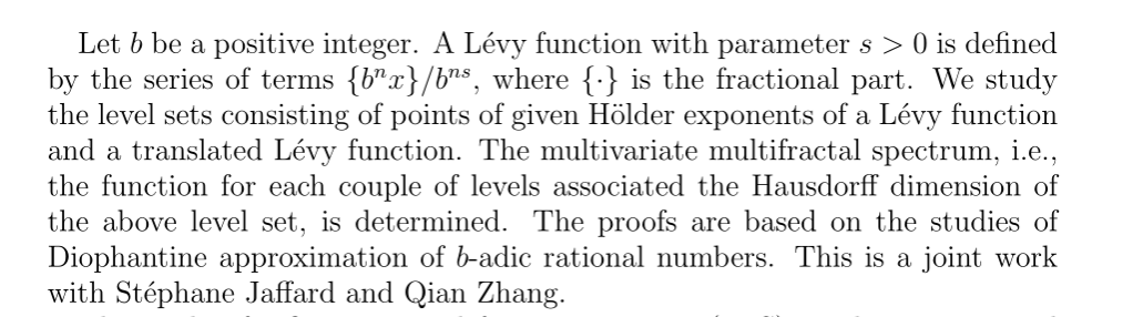 报告题目二:Multivariate multifractal spectrum of Lévy functions