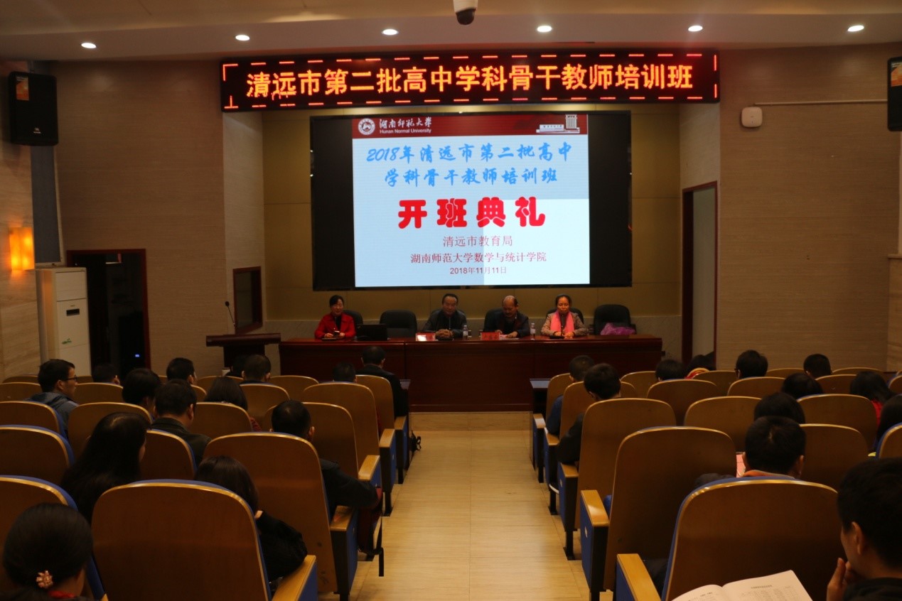 11月11日上午,我院承办的清远市第二批高中学科骨干教师培训班开班典礼在教科院101报告厅顺利举行。清远市教育教学研究院副主任卢盛云,湖南师范大学数学与统计学院副院长高旗举出席了典礼,典礼由数统院成教办主任尹冬平主持。