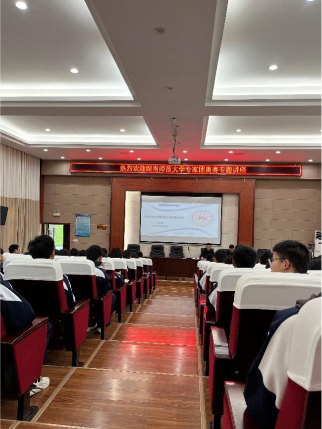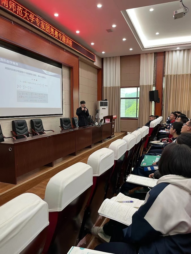 期间,蒋培杰和唐敏卫为三所高中学子做了《漫谈数学竞赛及思想方法》和《高中数学解题思维和相关方法》专题讲座。他们分别从“数学竞赛的来源”、“国际奥林匹克数学竞赛的发展”、“数学竞赛的解题方法”、“高中数学的解题思维”四个方面展开讲座,结合数学史上的著名数学家、高中数学竞赛中的经典题目以及常见的解题思路等内容做出了深入浅出的阐述,引导广大中学生积极思考、热爱数学,进而激发学生参与基础科学研究和科技创新的热情。