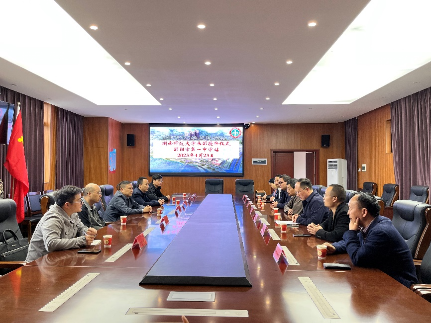 三校领导对我院一行表示热烈的欢迎和诚挚的感谢,他们详细介绍了邵阳一中、邵阳二中和绥宁一中的办学历史和成绩,希望能为师大输送更多的优质生源,同时也期待能与师大数统学院展开更深层次的合作,打造高校与高中合作的典范。